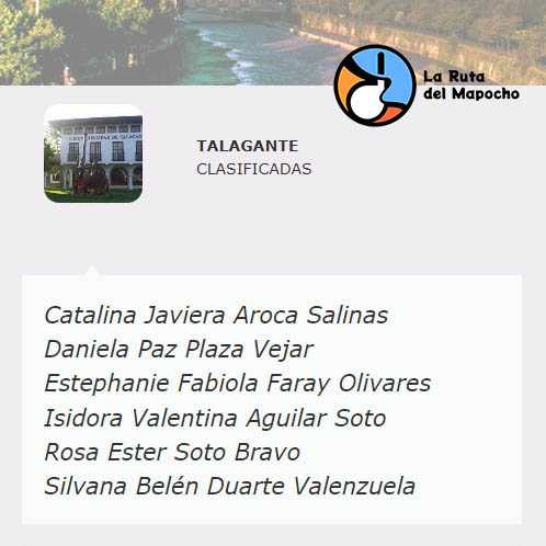 A continuación se presentan las seis clasificadas, que representan a cada comuna, en orden alfabético